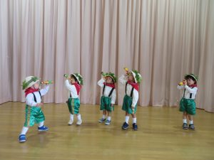 すみれ組による「ジャングルぐるぐる」「へそベリーちゃん」