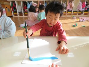 制作では鉛筆で書いてある文字をなぞり「うま」と書き初め体験をしました✨
