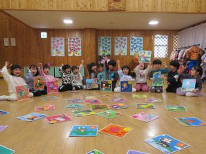 アンパンマンのイラストをみたり、文字を読んだりしながらカルタ遊びも楽しむ事が出来ました!