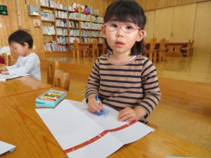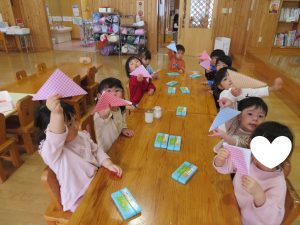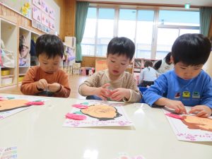 集中しながらハサミを使い✂、折り紙でちゅうりっぷを作りましたよ